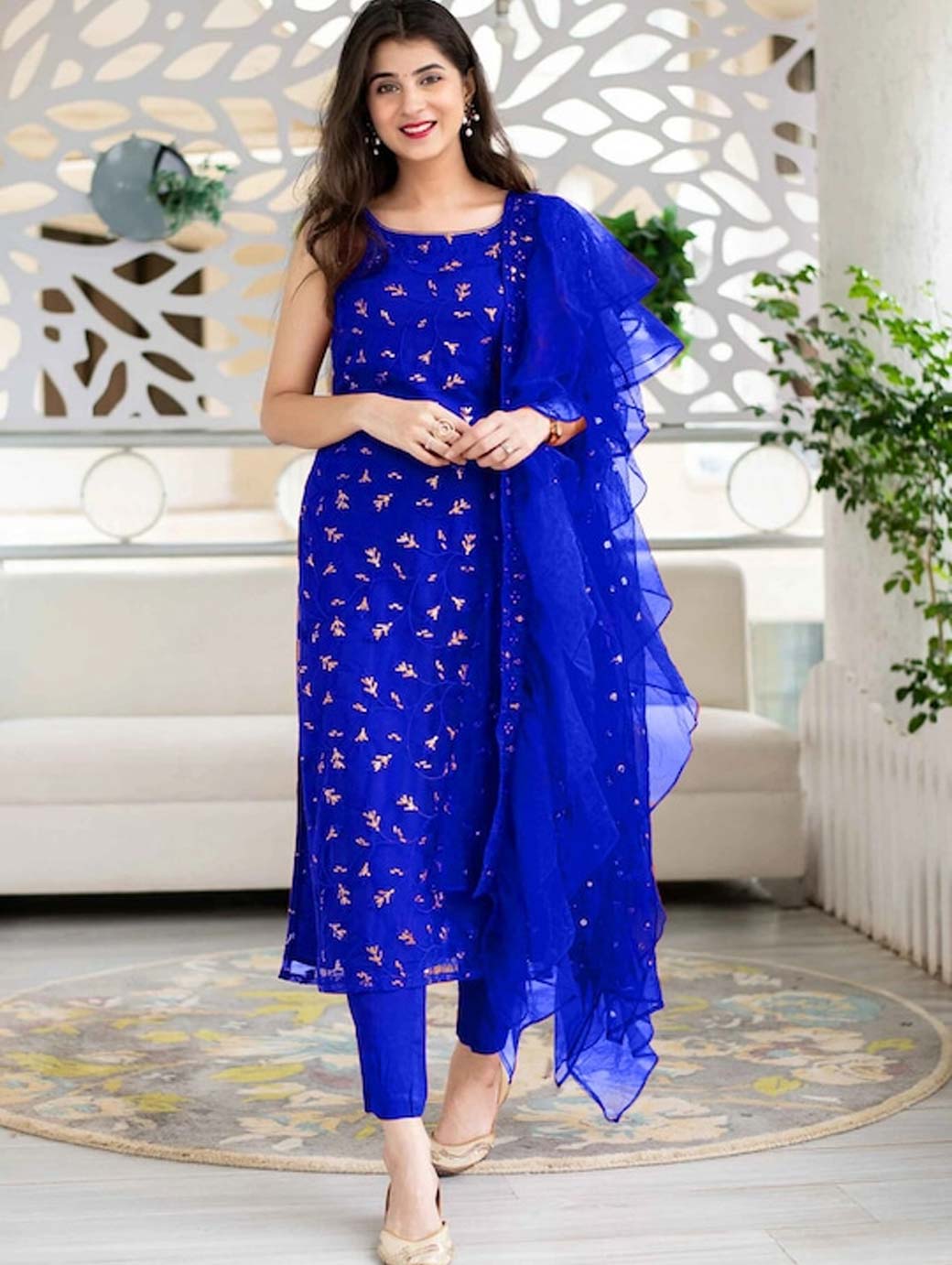 Top Length : 42 ( Inch) ||Top Width Size : 58 ( Inch) || Bottom Length : 2.2 MTR || Duptta Length : 2.25 MTR|| Inner Length Fit : Regular