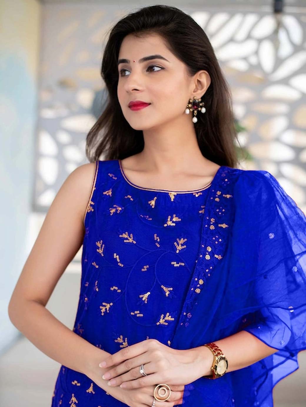Blue and gold-toned embroidered dupatta, has Disclaimer: Images are for referral