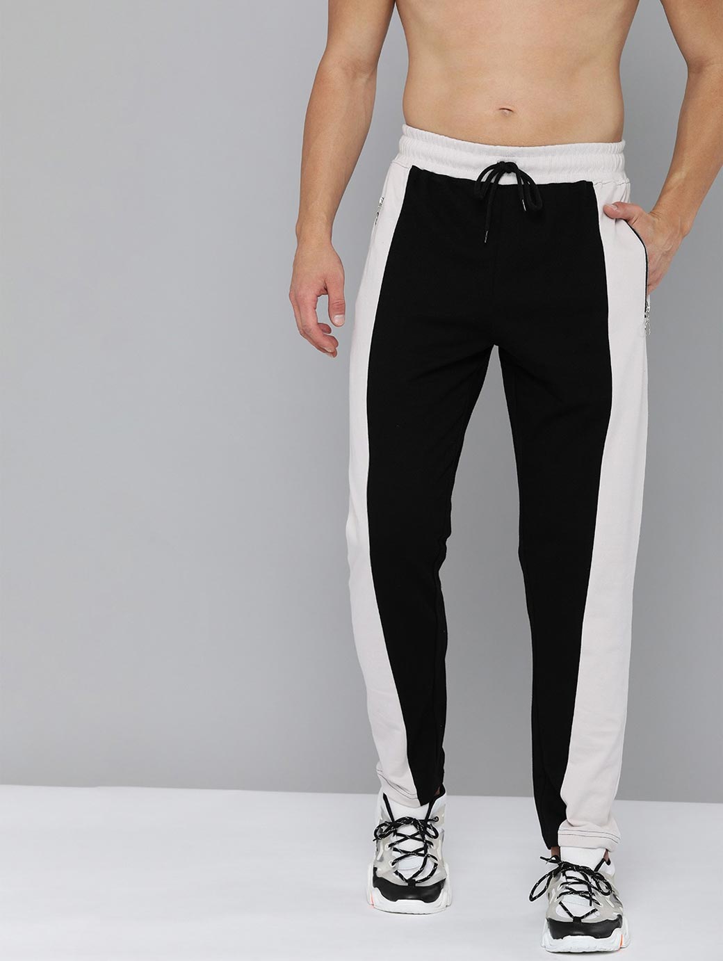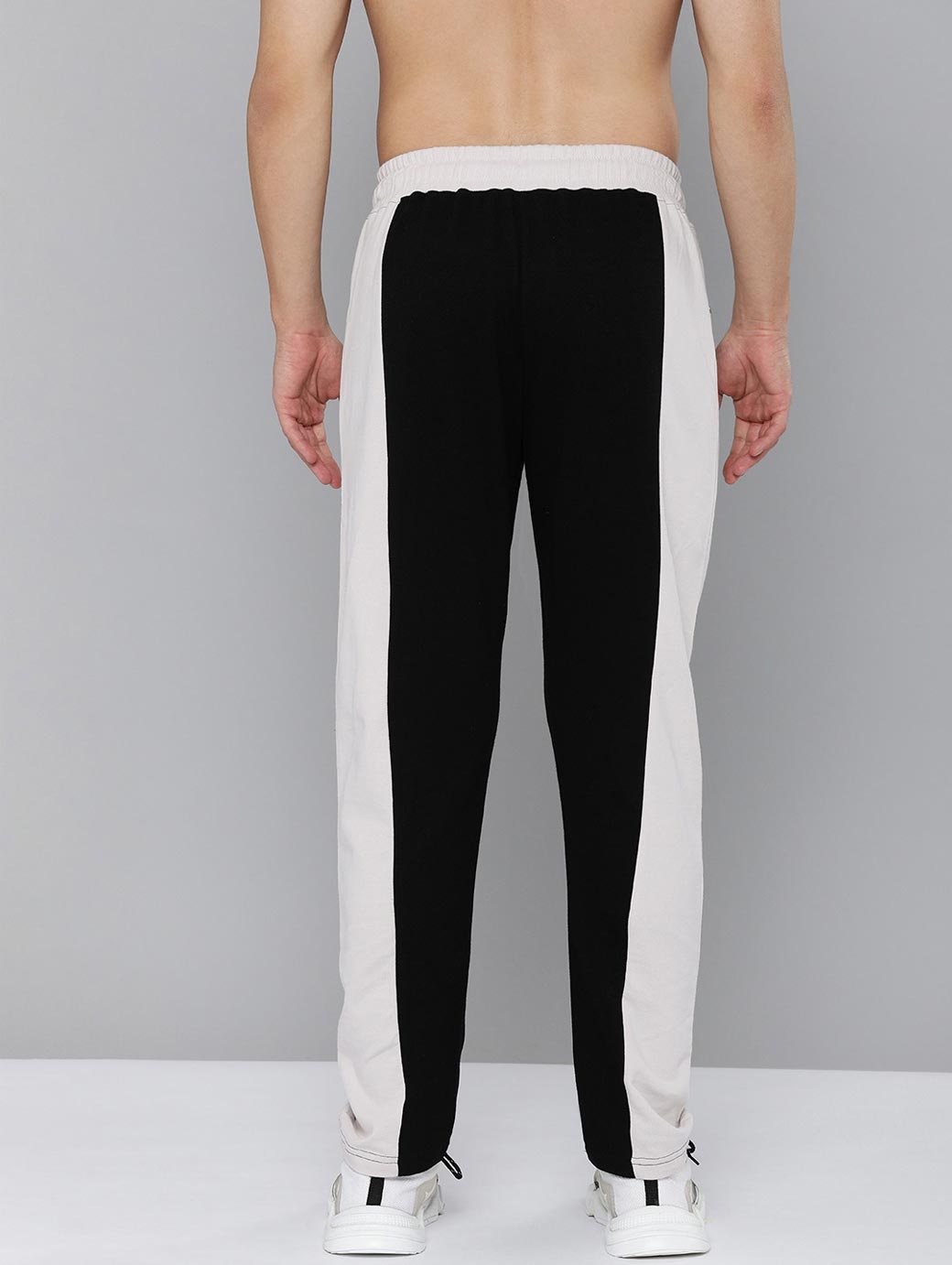 Black & White solid track pants, has an elasticated waistband with drawstring fastening, 3 pockets