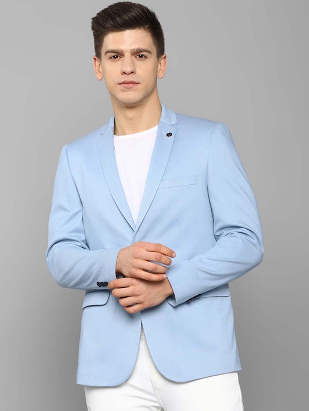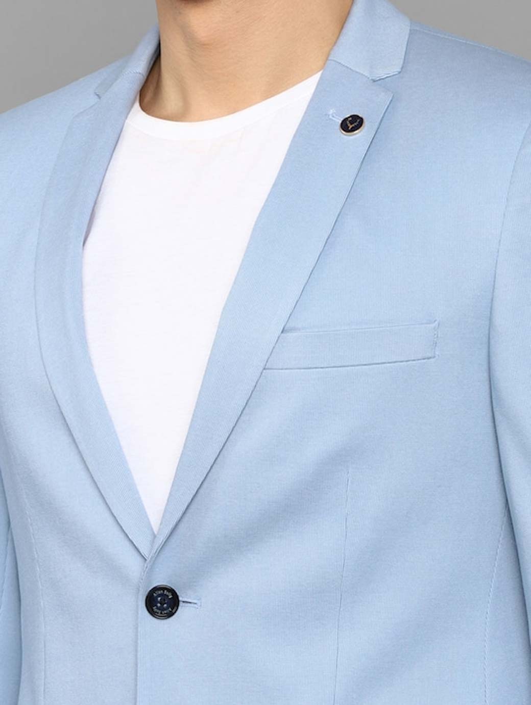 Men Blue Solid Slim-fit Single Breasted Formal Blazer
