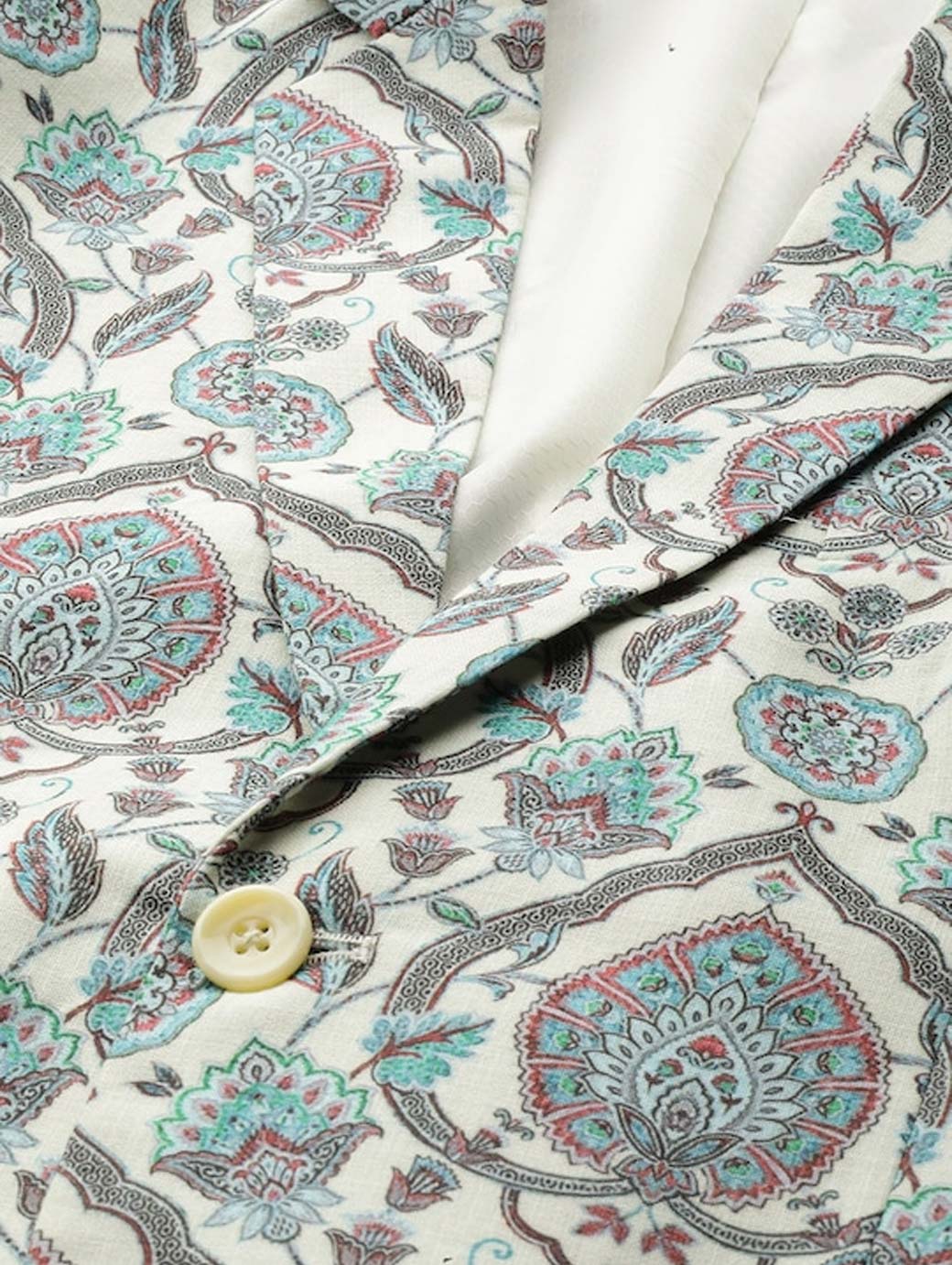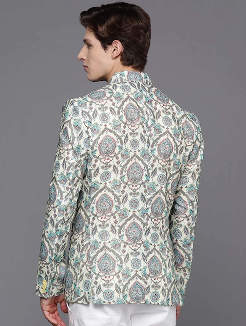 Men Cream Coloured & Green Printed Blazer