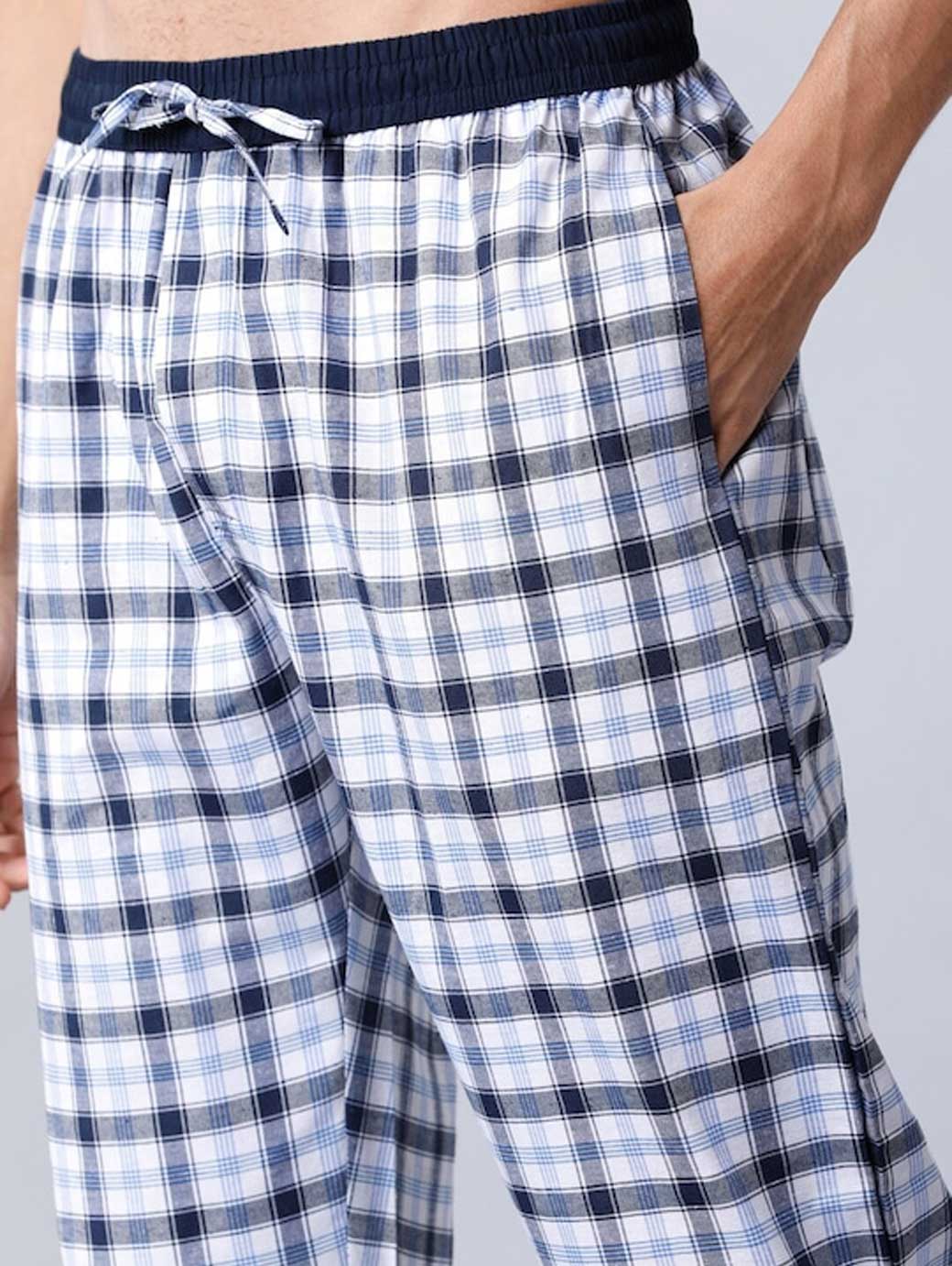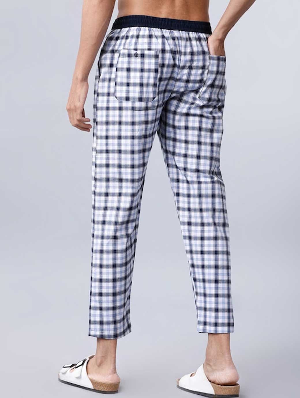 White checked mid-rise cropped lounge pants, has an elasticated waistband with a drawstring fastening, two pockets