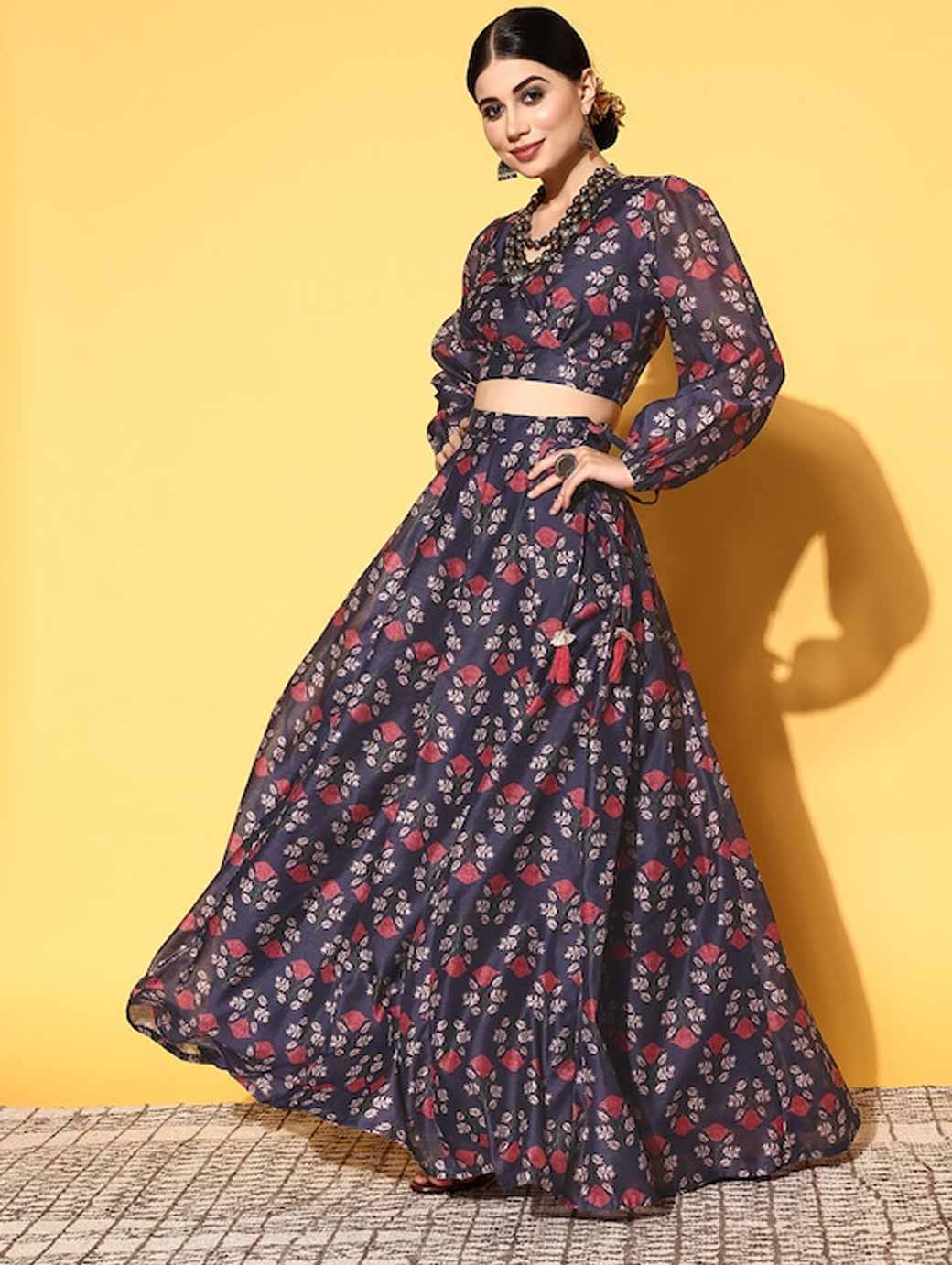 Navy Blue Printed Ready to Wear Lehenga Choli