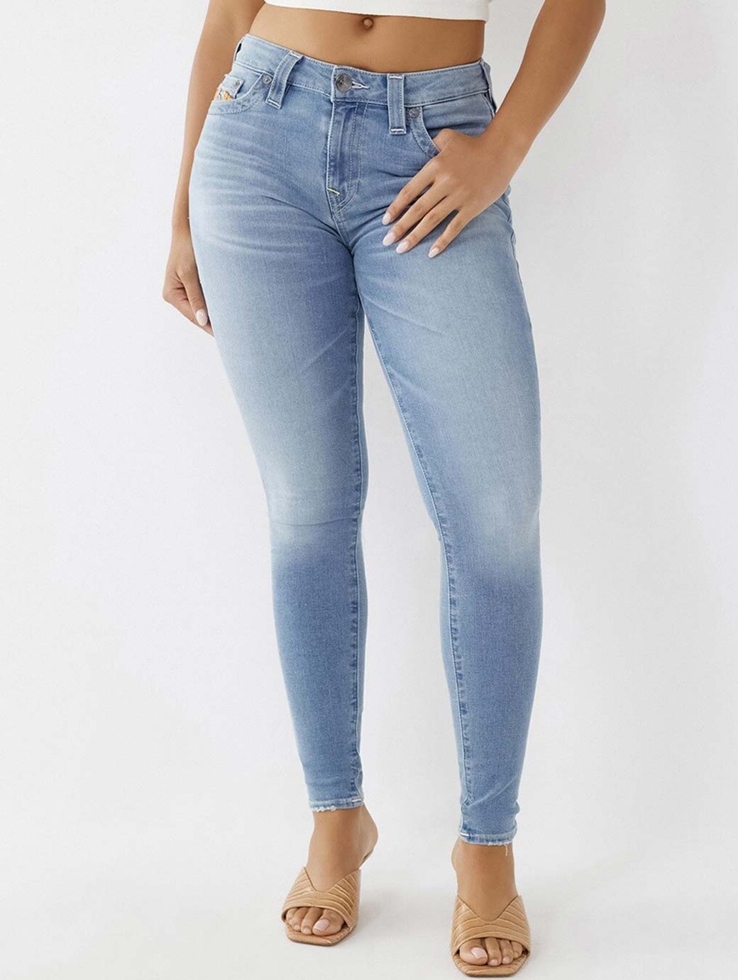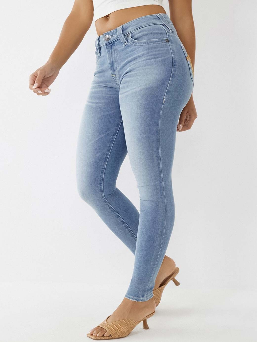 Light shade, light fade blue jeans Skinny fit, mid-rise Low distress Non stretchable 5 pocket Length: cropped