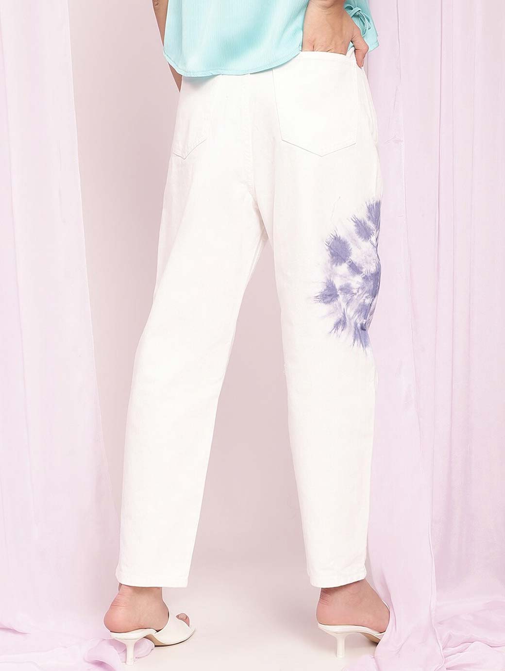 Light shade, no fade off white jeans Mom fit, high-rise Clean look Non stretchable 4 pocket Length: cropped