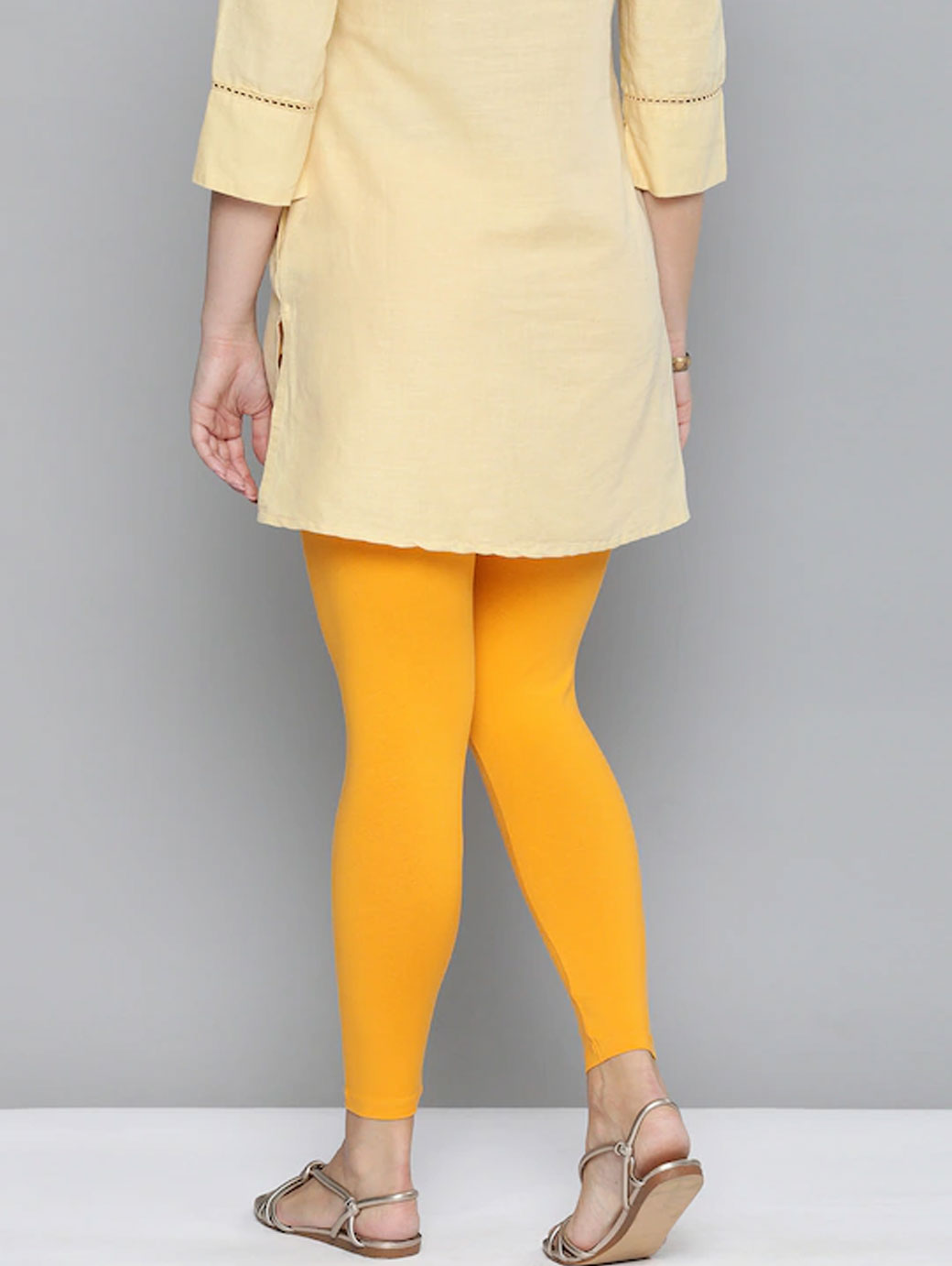 Red solid leggings with an elasticated waistband