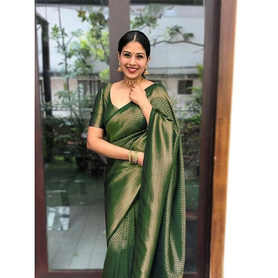 The blouse worn by the model might be for modelling purpose only. Check the image of the blouse piece to understand how the actual blouse piece looks like.
